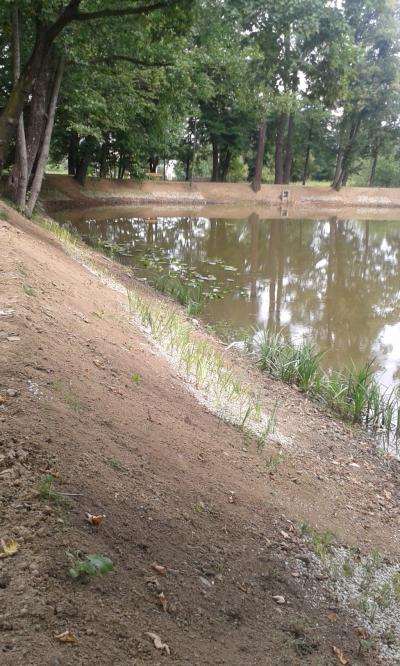 W ramach przedsięwzięcia na przełomie lipca i sierpnia w dwóch stawach parkowych nasadzono 8.900 roślin wodnych m.in. lilie wodne, miętę wodną, kaczeniec błotny, babiniec, rozpław sercowaty, przestęka pospolita, strzałka szerokolistna, pałka mała, kosaciec żółty, ponikło igłowate, i inne. Wysadzone rośliny mają na celu utrzymanie jakości wody oraz jej napowietrzanie, a także znaczenie ozdobne. Koszt zadania wyniósł 138.456 zł, z czego 124.610,40 zł pochodziło ze środków NFOŚiGW.