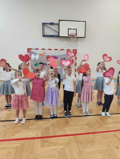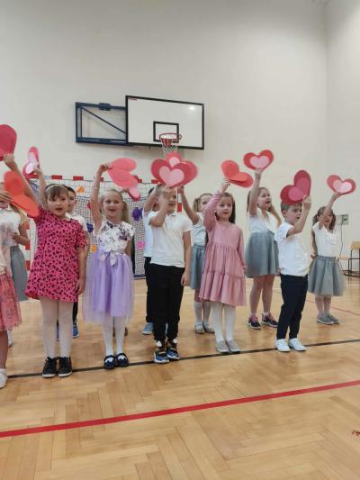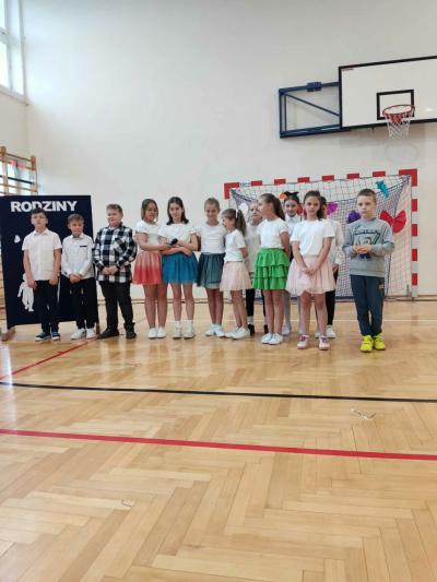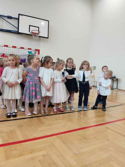 Następnie na scenie pojawiły się dzieci z oddziału przedszkolnego i z klas I, II i IV, które słowami wierszy i piosenek podziękowały rodzicom za miłość, opiekę i trud wychowawczy. Na koniec wszyscy odśpiewali tradycyjne „Sto lat”, a najmłodsi wręczyli upominki swoim rodzicom.