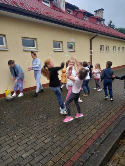 Po zakończeniu części oficjalnej na wszystkich czekały słodkości przygotowane przez rodziców oraz kiełbaski z grilla. Najwięcej radości sprawiły dzieciom zabawy prowadzone przez animatorów na sali gimnastycznej. Dzieci mogły się wyszaleć na dmuchanych zjeżdżalniach i trampolinach. Dziewczynki chętnie korzystały z kolorowych warkoczyków zaplatanych przez Panie ze Świetlicy. Strażacy z Ochotniczej Straży Pożarnej w Wójtowej zaprezentowali swój samochód strażacki. Każdy znalazł coś dla siebie.