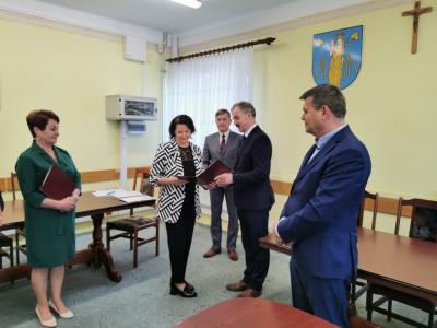 W dniu 30 kwietnia 2025 r. Wójt Gminy Lipinki Pan Bogdan Czeluśniak w obecności Przewodniczącego Rady Gminy Lipinki Pana Jerzego Cygan i Dyrektora Gminnego Centrum Obsługi Oświaty w Lipinkach Pana Janusza Dudka, wręczył wybranym przez komisję konkursową kandydatom akty powierzenia stanowiska dyrektorów szkół.
