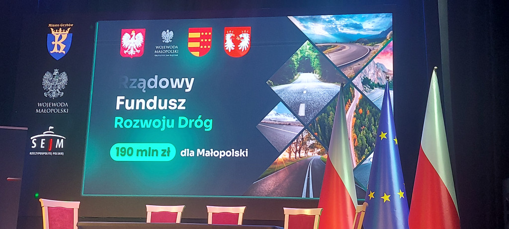 W dniu 19 marca 2026 r. w Miejskim Domu Kultury w Grybowie odbyło się uroczyste wręczenie promes na realizację zadań w ramach Rządowego Funduszu Rozwoju Dróg. Symboliczne czeki na inwestycje drogowe, wręczył na ręce samorządowców powiatu gorlickiego i nowosądeckiego II Wicewojewoda Małopolski, Ryszard Śmiałek.