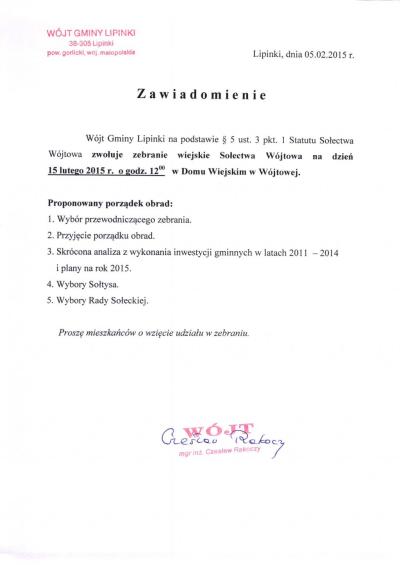 ZAWIADOMIENIE - ZEBRANIE WIEJSKIE SOŁECTWA WÓJTOWA 06.02.2015 13:14 Treść Facebook Twitter Email Drukuj