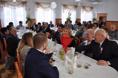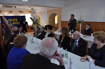 Następnie w Domu Ludowym w Lipinkach Wójt Gminy Lipinki Pan mgr inż. Czesław Rakoczy przywitał wszystkich zaproszonych gości. W swej wypowiedzi podkreślił wartość rodziny jako fundamentu w życiu Polskiego Narodu i umocnił pary małżeńskie w sile i radości wspólnego pożycia. Przemówienia okolicznościowe zostały wygłoszone także przez Przewodniczącego Rady Gminy Lipinki Bogdana Czeluśniaka.