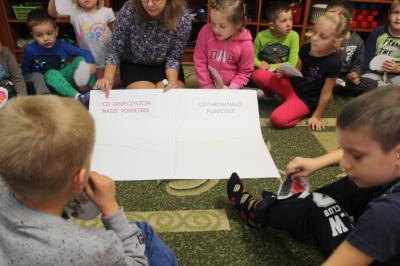 Na początku dzieci z przedszkola wysłuchały i oglądnęły bajkę edukacyjną „Ekologiczny dom”, a następnie zaprezentowano dzieciom co zanieczyszcza, a co chroni nasze powietrze. W formie zabawy edukacyjnej dzieci malowały, a następnie przyklejały na arkusze z pomocą pedagoga obrazki związane z tym tematem. Zachęcano dzieci do różnorakich działań mających wpływ na nasze zdrowe i czyste powietrze np.: jak walczyć ze smogiem, dlaczego warto jeździć na rowerze czy sadzić drzewa. Na koniec dzieci otrzymały ciekawe materiały edukacyjne do utrwalania zdobytej wiedzy.
