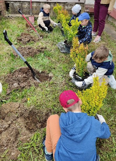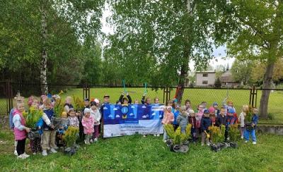 Przedszkolaki z Krygu bardzo zaangażowały się w akcję. Dzięki wspólnej pracy powstała zielona ściana wokół ogrodzenia, a rabatka zrobiła się kolorowa.