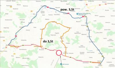 DMC<3,5t. Została ona poprowadzona następujący drogami: