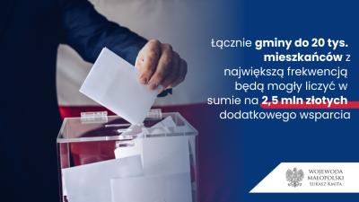 – Łącznie gminy do 20 tys. mieszkańców z największą frekwencją będą mogły liczyć w sumie na 2,5 mln złotych dodatkowego wsparcia! Zachęcam mieszkańców do pójścia na wybory. To wielka szansa na wielkie środki – podsumowuje wojewoda Łukasz Kmita.