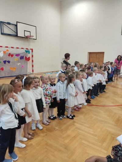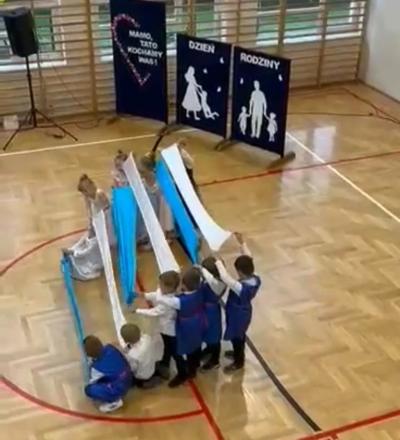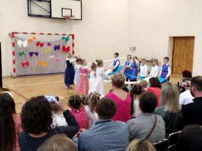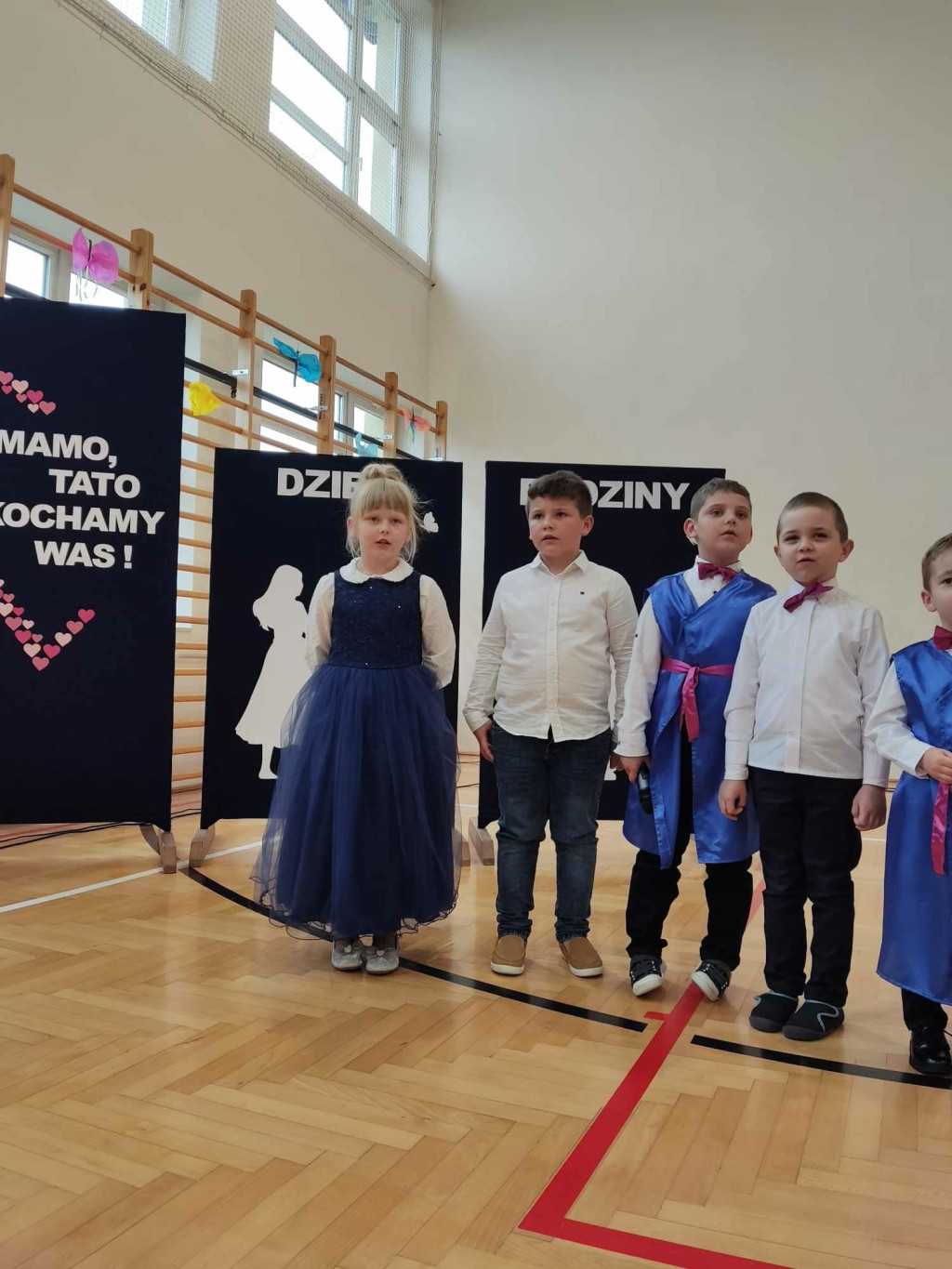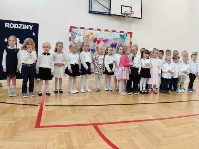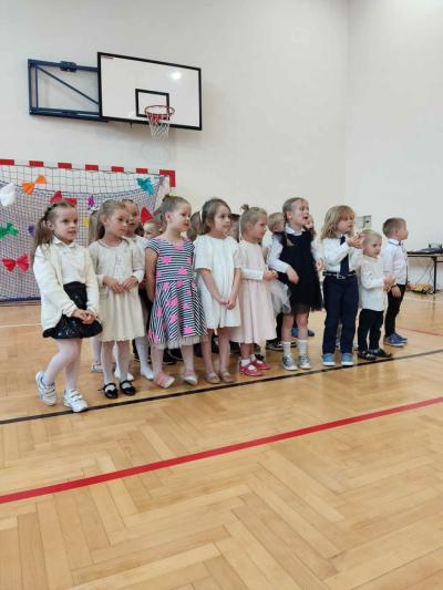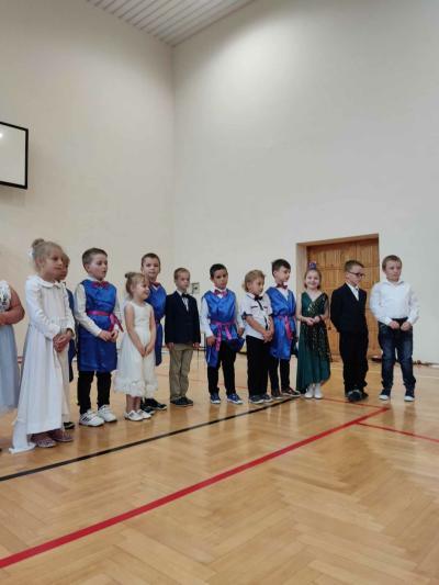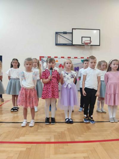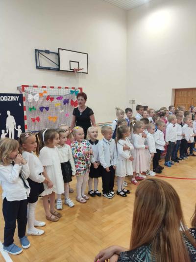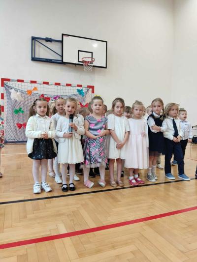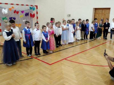 Następnie na scenie pojawiły się dzieci z oddziału przedszkolnego i z klas I, II i IV, które słowami wierszy i piosenek podziękowały rodzicom za miłość, opiekę i trud wychowawczy. Na koniec wszyscy odśpiewali tradycyjne „Sto lat”, a najmłodsi wręczyli upominki swoim rodzicom.