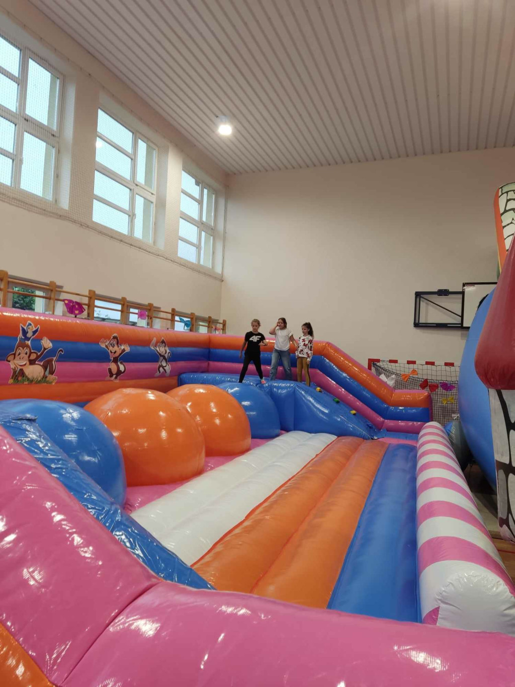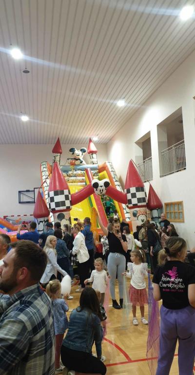 Po zakończeniu części oficjalnej na wszystkich czekały słodkości przygotowane przez rodziców oraz kiełbaski z grilla. Najwięcej radości sprawiły dzieciom zabawy prowadzone przez animatorów na sali gimnastycznej. Dzieci mogły się wyszaleć na dmuchanych zjeżdżalniach i trampolinach. Dziewczynki chętnie korzystały z kolorowych warkoczyków zaplatanych przez Panie ze Świetlicy. Strażacy z Ochotniczej Straży Pożarnej w Wójtowej zaprezentowali swój samochód strażacki. Każdy znalazł coś dla siebie.