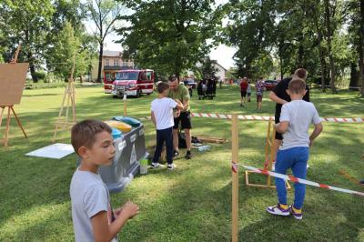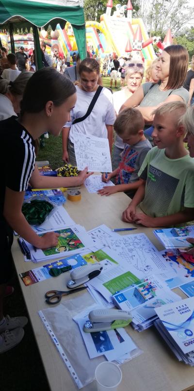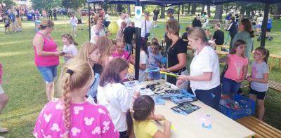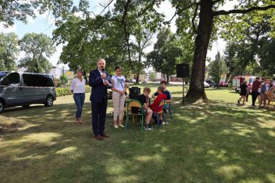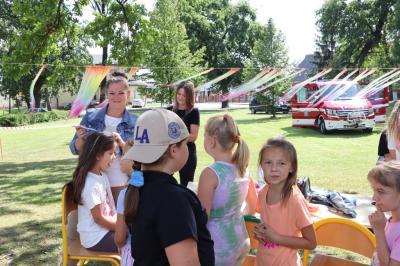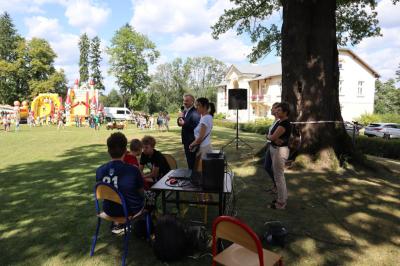 Wszyscy bawiący się w parku mogli poczęstować się słodyczami i napojami. W pomoc zaangażowali się także strażacy, nauczyciele i gminny ekodoradca.