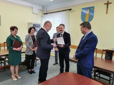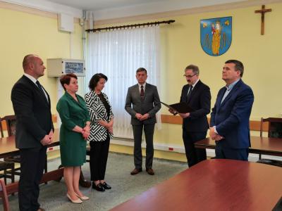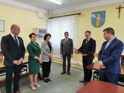 W dniu 30 kwietnia 2025 r. Wójt Gminy Lipinki Pan Bogdan Czeluśniak w obecności Przewodniczącego Rady Gminy Lipinki Pana Jerzego Cygan i Dyrektora Gminnego Centrum Obsługi Oświaty w Lipinkach Pana Janusza Dudka, wręczył wybranym przez komisję konkursową kandydatom akty powierzenia stanowiska dyrektorów szkół.