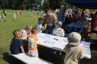 Na najmłodszych czekało mnóstwo atrakcji; dmuchane zjeżdżalnie, zajęcia z animatorem-bańki mydlane, zabawy z chustą, zabawy z Minionkiem,malowanie twarzy, tatuaże wodne i kolorowe warkoczyki. Był też słodki kącik z watą cukrową. Dla zainteresowanych przygotowany był tor przeszkód i zajęcia sprawnościowe pod okiem harcerzy na czele z opiekunem Krzysztofem Dedą. Uczestnicy mieli również okazję poznać pracę służb mundurowych z Komendy Powiatowej z Biecza i z bliska zobaczyć sprzęt,którego na co dzień używają funkcjonariusze. Również strażacy z OSP Lipinki zaprezentowali swój sprzęt gaśniczy – między innymi wóz bojowy i quad.