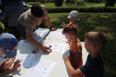 Gminny Ekodoradca przygotował też stoisko z edukacyjnymi konkursami.