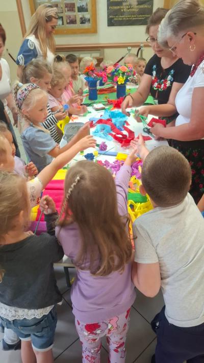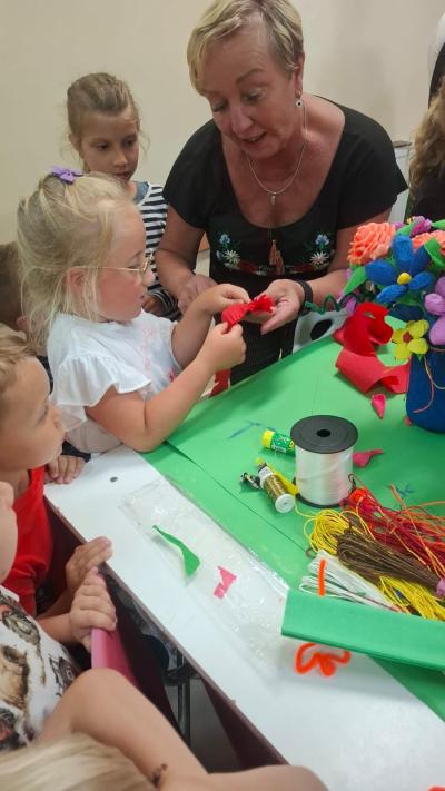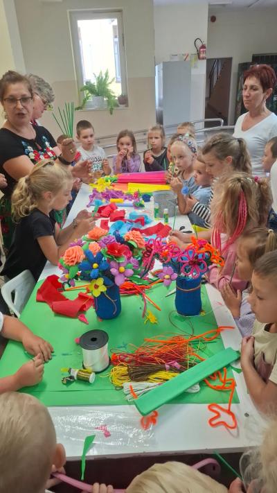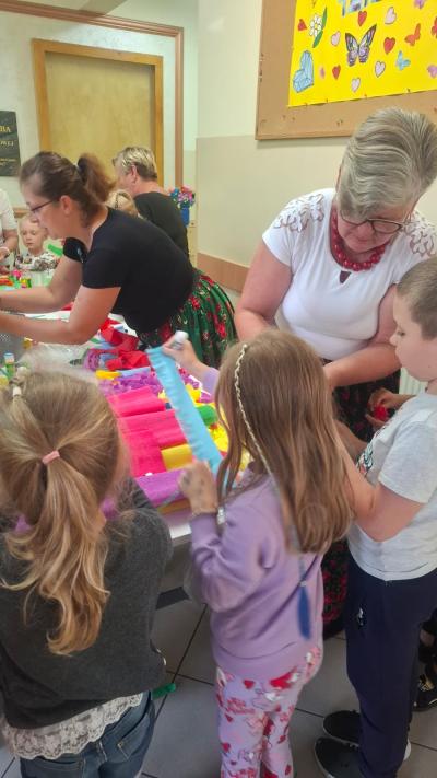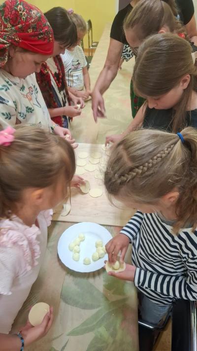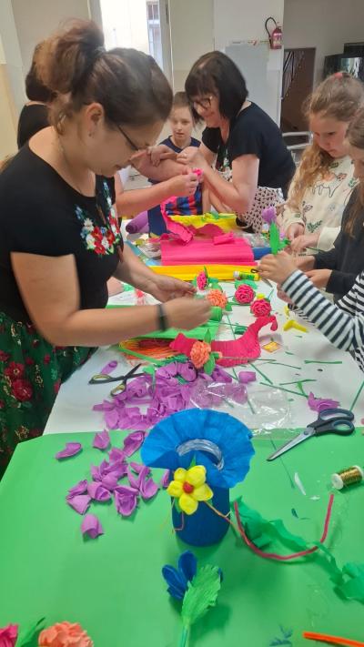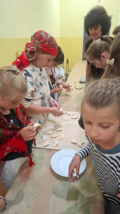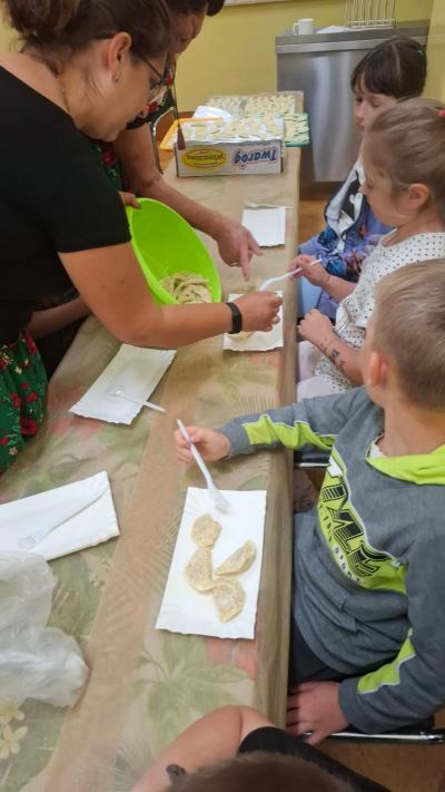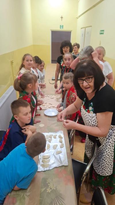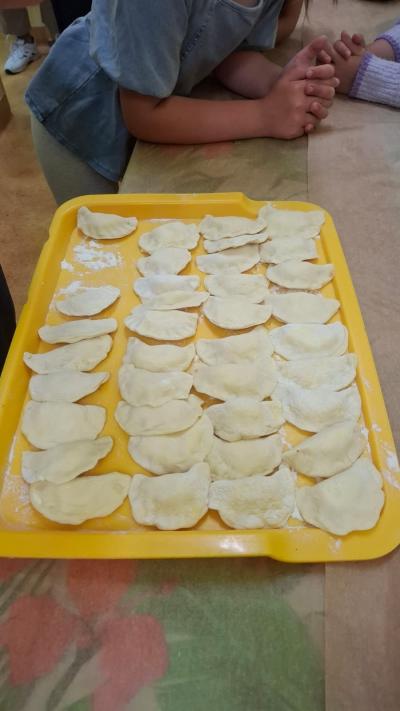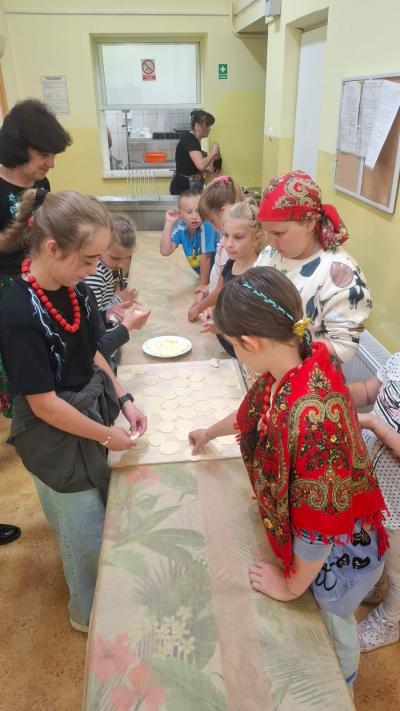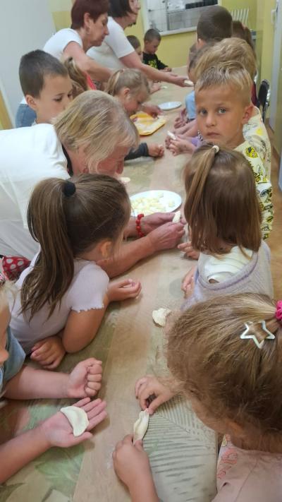 Środa i czwartek należały do Wójtowej, gdzie królowały pierogi. Pod okiem Pań z Koła Gospodyń Wiejskich z Wójtowej dzieci lepiły pierogi na słono i słodko. Nauka, wspólne śpiewanie i dobra zabawa zintegrowały kilka pokoleń. Miejscowe artystki przekazały też umiejętność tworzenia kwiatów z bibuły. Kolorowe bukiety kwiatów wkomponowały się idealnie na pochmurne dni. Było smacznie, zdrowo, wesoło i kolorowo.