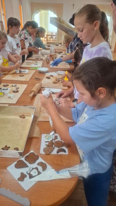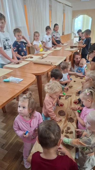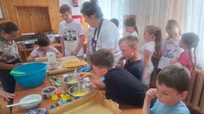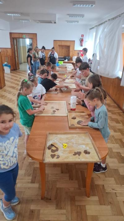 W piątek w ramach Kreatywnych Wakacji dzieci wraz z Kołem Gospodyń Wiejskich z Lipinek pracowały przy wyrabianiu, pieczeniu i zdobieniu ciasteczek. Powstały między innymi kolorowe pierniki, drożdżowe rogaliki i kruche chusteczki. Do pracy włączyły się nawet najmłodsi mieszkańcy Lipinek- maluszki ze żłobka. Po ciężkiej pracy nagrodą dla uczestników były pyszne lody.