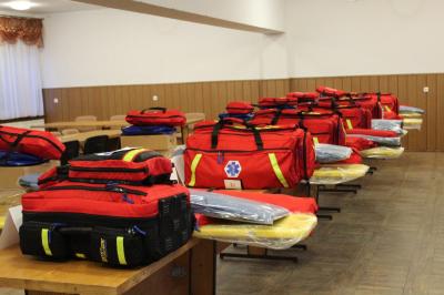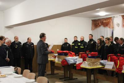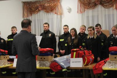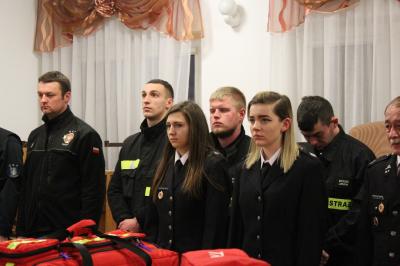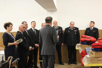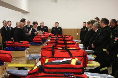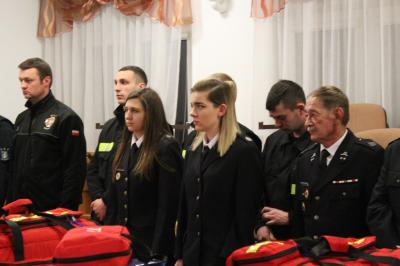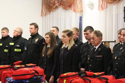 Po powitaniu wszystkich zebranych przez organizatora spotkania odbyło się uroczyste przekazanie sprzętu ratownictwa medycznego dla 6 jednostek Ochotniczych Straży Pożarnych. Wójt Gminy Lipinki podpisał i wręczył na ręce prezesów Ochotniczych Straży Pożarnych, umowy przekazania sprzętu. Wszystkie jednostki OSP otrzymały zestawy ratownictwa medycznego PSP R1 z pełnym wyposażeniem w torbie, z kompletem szyn Kramera, zestawem TRIAGE, hydrożelami, kamizelkami ratowniczymi oraz deską pediatryczną i ortopedyczną.