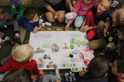 Na początku dzieci z przedszkola wysłuchały i oglądnęły bajkę edukacyjną „Ekologiczny dom”, a następnie zaprezentowano dzieciom co zanieczyszcza, a co chroni nasze powietrze. W formie zabawy edukacyjnej dzieci malowały, a następnie przyklejały na arkusze z pomocą pedagoga obrazki związane z tym tematem. Zachęcano dzieci do różnorakich działań mających wpływ na nasze zdrowe i czyste powietrze np.: jak walczyć ze smogiem, dlaczego warto jeździć na rowerze czy sadzić drzewa. Na koniec dzieci otrzymały ciekawe materiały edukacyjne do utrwalania zdobytej wiedzy.