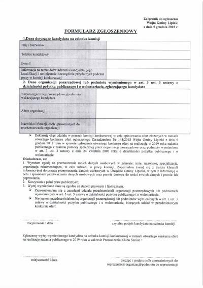Ogłoszenie o naborze kandydatów na członków Komisji konkursowej opiniującej oferty w otwartym konkursie ofert
