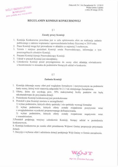 Zarządzenie Nr 15/2019 Wójta Gminy Lipinki z dnia 28 lutego 2019 r.w sprawie powołania Komisji Konkursowej do opiniowania ofert złożonych w otwartym konkursie ofert na realizację zadania publicznego z zakresu wspierania i upowszechniania kultury fizycznej 05.03.2019