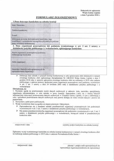 Ogłoszenie o naborze kandydatów na członków Komisji konkursowej opiniującej oferty w otwartym konkursie ofert