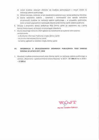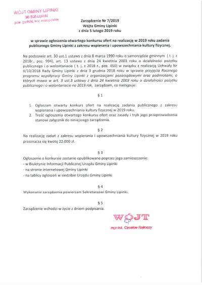 Ogłoszenie otwartego konkursu ofert na realizację w 2019 roku zadania publicznego z zakresu wspierania i upowszechniania kultury fizycznej
