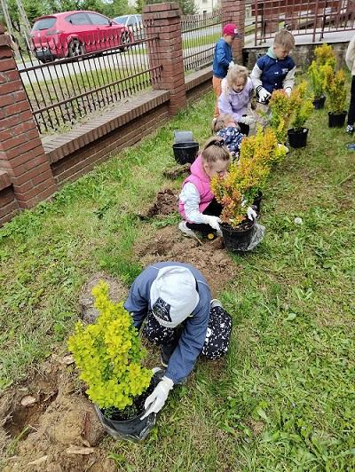 Przedszkolaki z Krygu bardzo zaangażowały się w akcję. Dzięki wspólnej pracy powstała zielona ściana wokół ogrodzenia, a rabatka zrobiła się kolorowa.